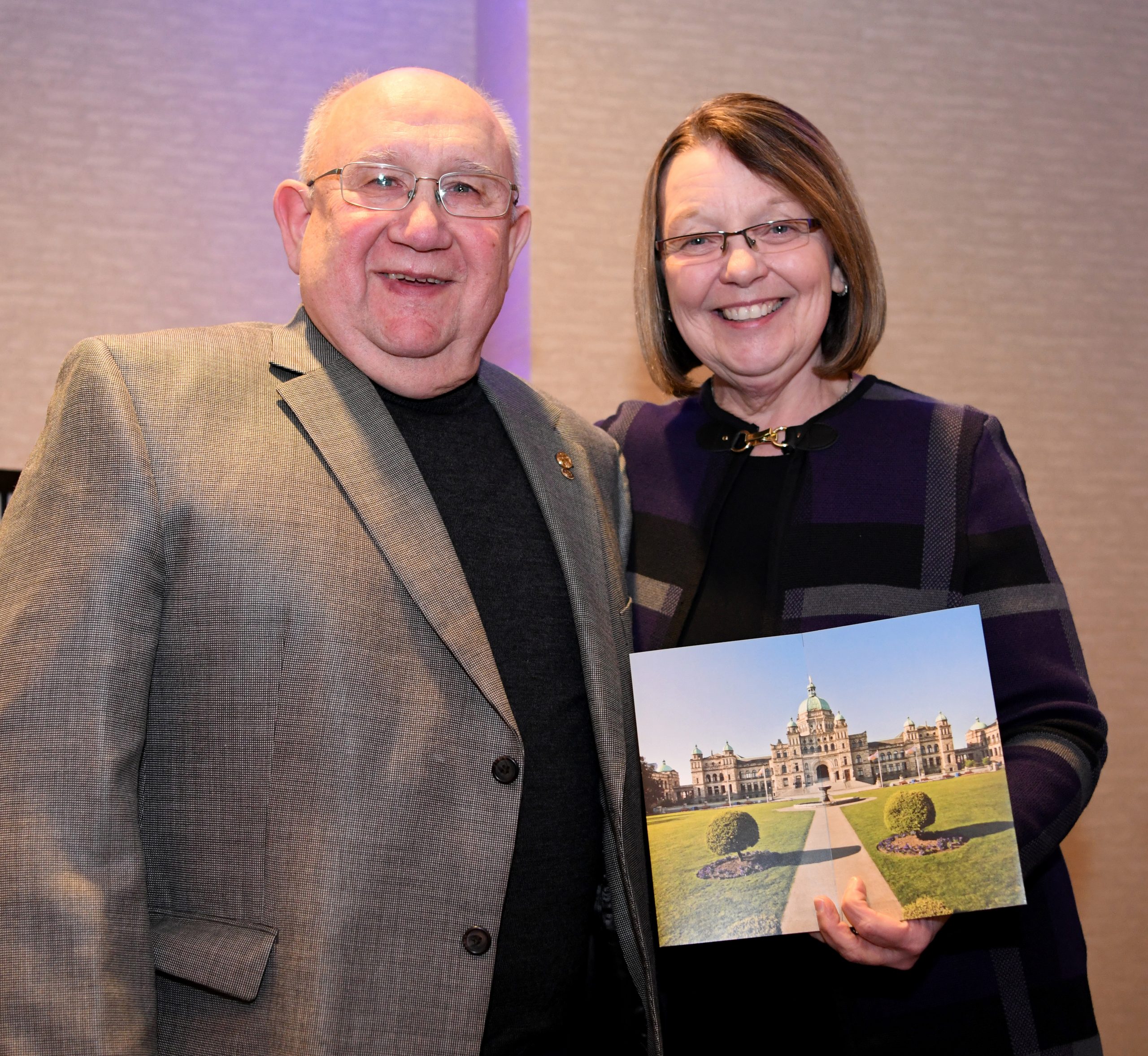 Close to 100 employees and friends gathered at the Courtyard Marriott Prince George to celebrate with Tom, including his wife Jean, friends and members of the Leboe family, PWB owner Taizan Komatsu, many current and retired employees, colleagues from several local organizations, as well as community leaders – MP Todd Doherty, MLA Shirley Bond and Mayor Lyn Hall who made presentations.
